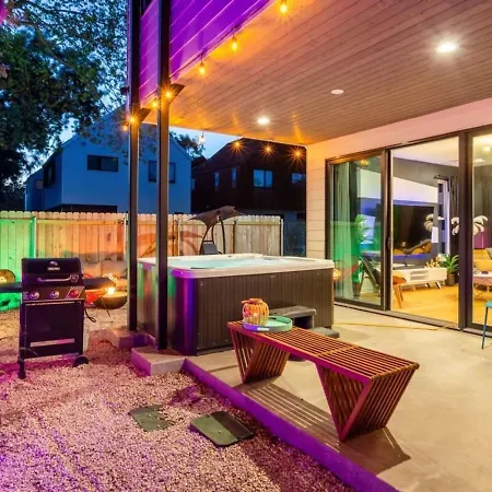 **Hot Tub Time Machine - Clubhouse - Dt 6 Min Drive** invites you to experience a unique blend of luxury and adventure in the heart of Austin. This vibrant retreat, conveniently situated just 8 km from the charming Zilker Zephyr Miniature Railroad, serves as an ideal hub for exploring local attractions while offering the comforts of home. With Austin-Bergstrom International Airport a mere 15 km away, your travel experience is seamless, allowing you to maximize your leisure time.